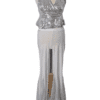 تتضمن البدلة تنورة من قماش الأورجانزا تنساب بشكل جميل مع الحركات، مع شق على الجانب الأيمن.