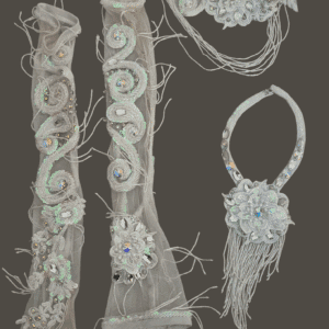 אביזרים: 2 כפפות תואמות, שרשרת וסרט לראש.