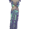 Костюм имеет развевающуюся юбку из ткани органзы и разрез с правой стороны.